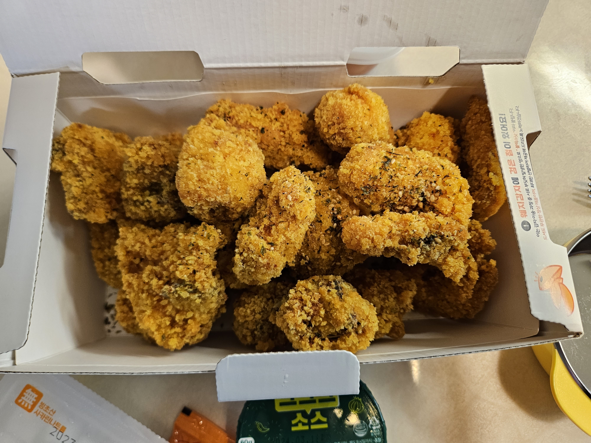 ▼치킨튀김이 거의 누룽지보단 부드럽지만 바삭바삭한 게 일반 후라이드보단 맛있게 느껴졌는데요. 속살은 또 촉촉하고 부드러워서 아들이 엄청 좋아하더라고요.