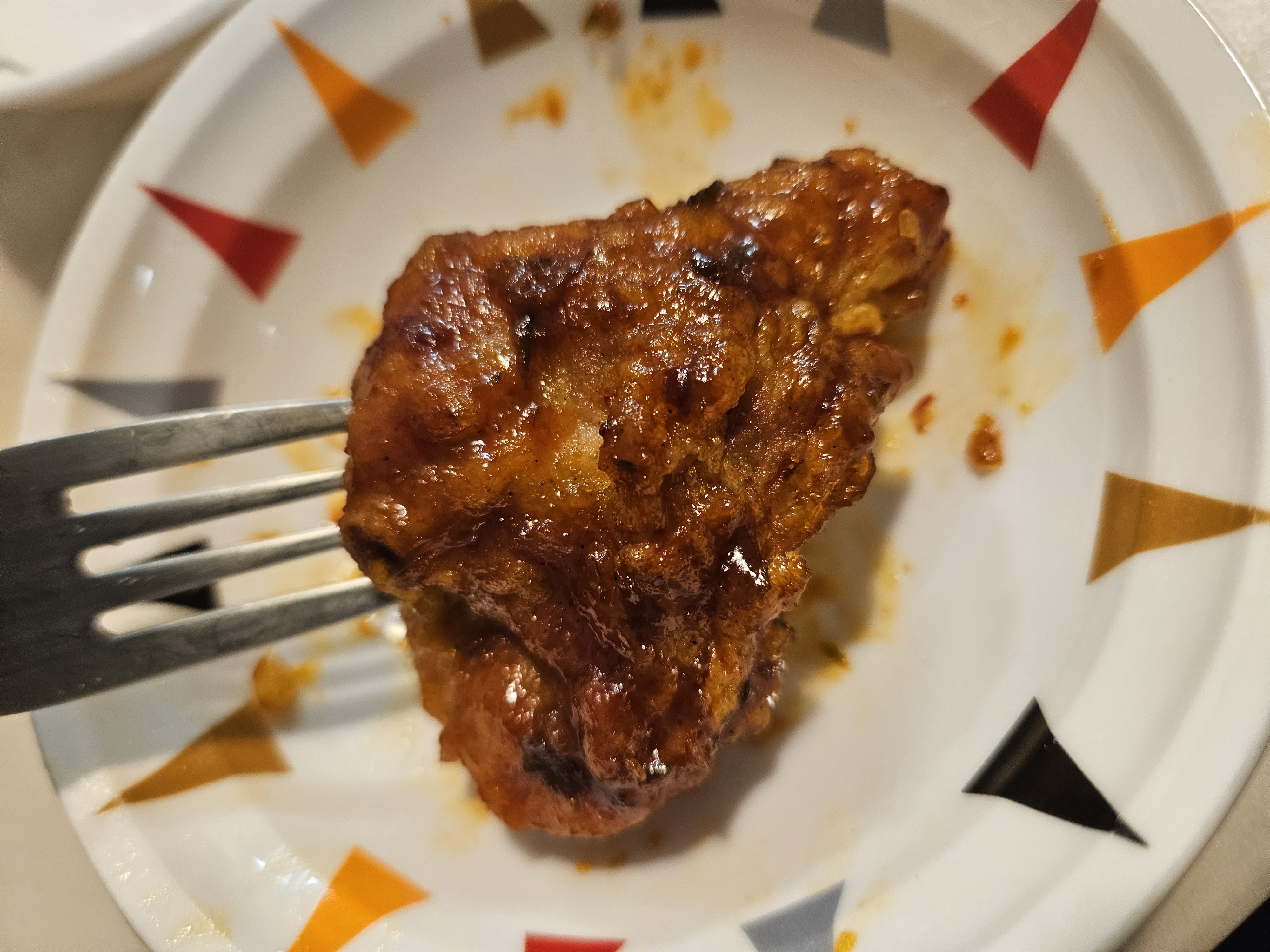 ▼그래도 일단 맛을 봐야겠죠. 우선 닭다리부터 먹어보았는데요. 크크크치킨보단 튀김은 바삭하진 않지만 맛은 매콤한 게 맛있더라고요.