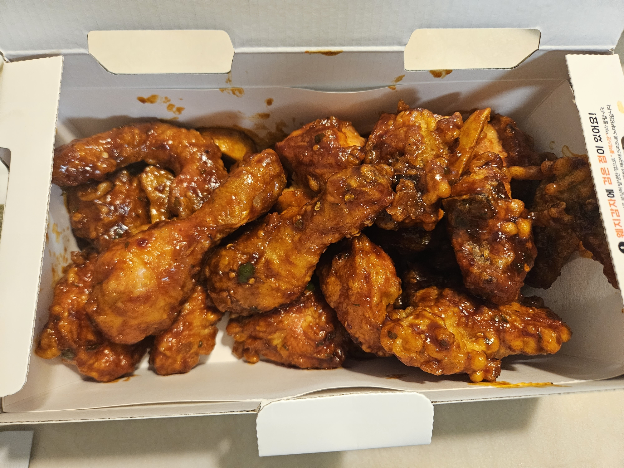 제가 생각했던 것보다 맵진 않았지만 한번 정도 시켜 먹어볼 만한 맛이었지 않나 싶습니다. 만약 적당히 매운 치킨을 먹고 싶다면 꼭 한번 먹어보시는 걸 추천드립니다. 이렇게 또 포스팅을 하다 보니 먹고 싶어 지네요. 하하...